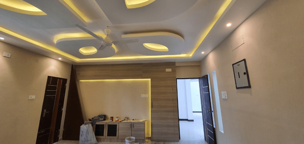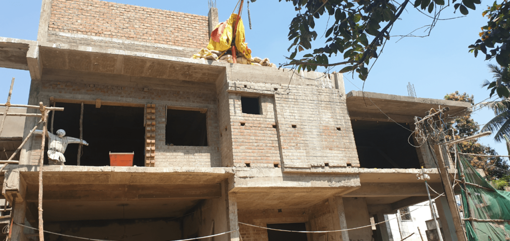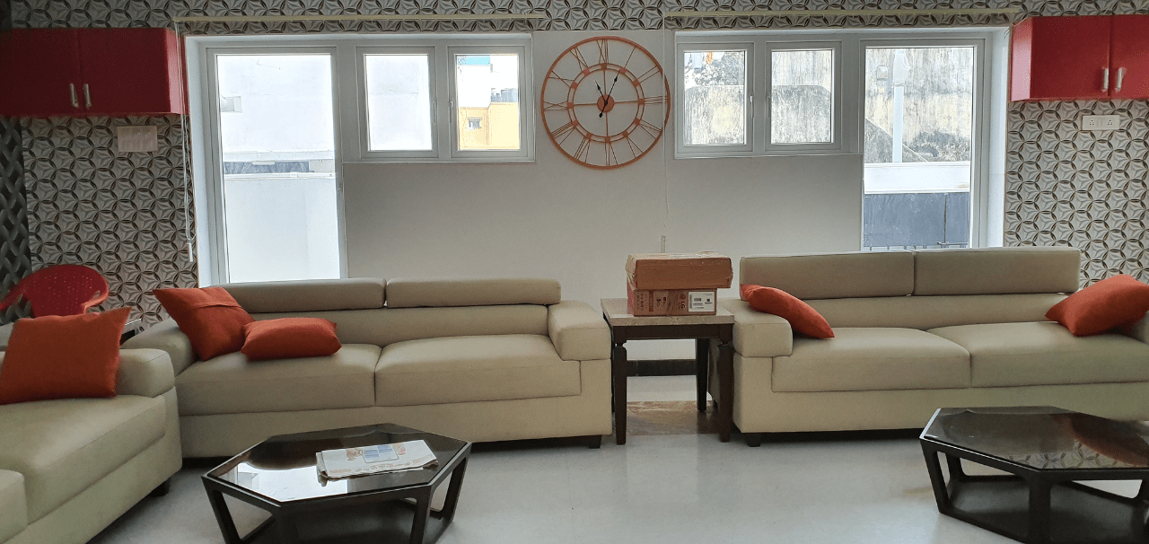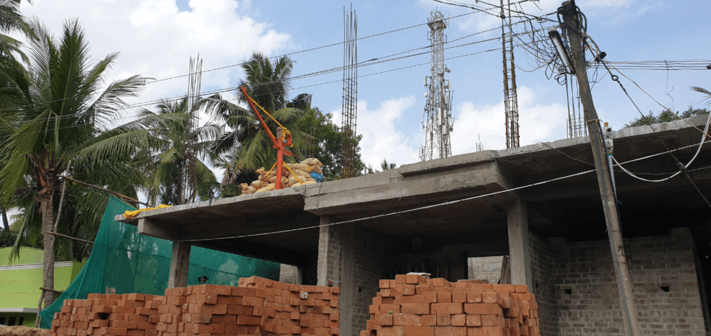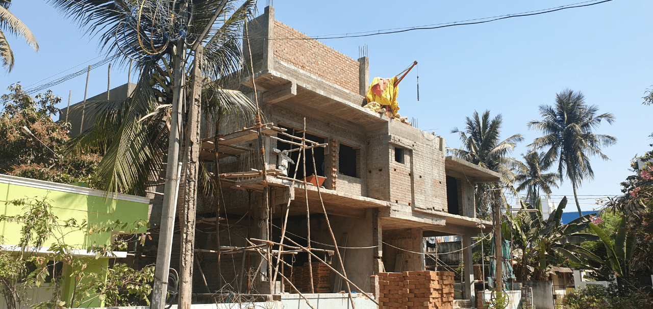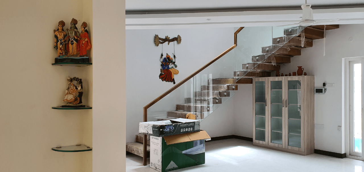 This residence at Ambattur was built in 2019 for Mr. Anandan comprising of the 5bhk green house building with views to swimming pool. Unlike other private houses in Chennai 5 miles away from an affluent suburb of the city. This house dominates its landscape like a classical villa. An opaque even forbidding entrance facade, dynamically asymmetrical but with symmetrical entrance gives way as one moves around the building to the open front. Maintaining a modern and elegant character both internally and externally, this 5 bedroom villa is planned in a manner where the semi-private areas like living and dining areas are clustered together while private areas,i.e,the bedrooms are kept in the first Floor. The dining area also opens into the Pooja area which reflects the order and peace framed within. The individual master bedroom suites, four in number have been given distinctly different aesthetics that echo the user’s individual personalities. Light is give a special consideration as well so that each of the spaces is well-lit receiving natural light. Connectivity of spaces, and open plan as well as privacy balanced in the design, which is layered in multiple levels and connected with external landscape spaces. Each Bedroom suite is complete with its own lounge, private study, walk-in-wardrobe and bathroom facilities. Planters and other design elements have been carefully chosen and placed to enhance the simplicity of the design, while adding character. Two stories up, a sheltering concrete canopy covers the dimensions of the perfectly square plan supported on concrete columns, floats over the wild composition below. Between the ground and the canopy is a double height interpenetrating outside and inside spaces lavishly accommodating the entire villa set up. The whole villa is 5400 sft. Which has a separate swimming pool and Terrace garden. There is a smooth metamorphosis from built to open spaces where functional spaces flowing to landscaped panoramas. A Koi pond and Vertical garden is incorporated within the design to add an element of tranquility and calm to the interiors. Every space of the house is designed in a way that it embodies warmth and comfort of a traditional home with modernity blending in.