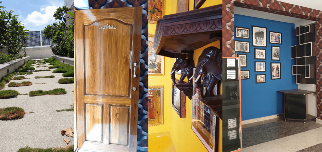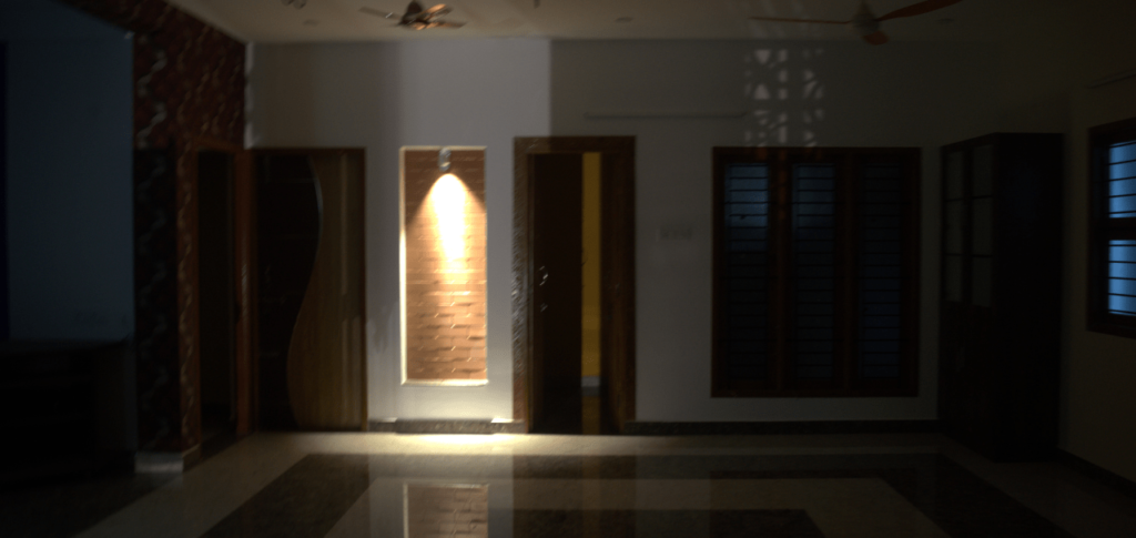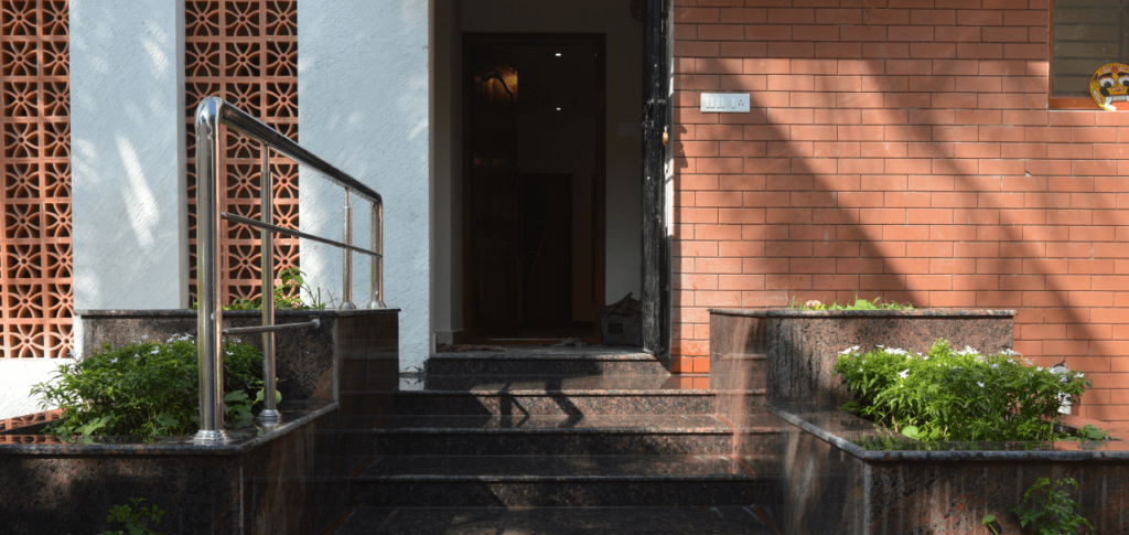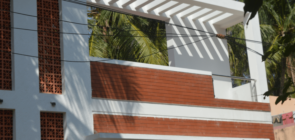 A key design element in the home is the jali work—delicate, geometric screens that allow for natural light and ventilation, while offering privacy. This traditional feature is paired with contemporary materials like Terracotta bricks and Teak wood, which evoke a sense of nostalgia while grounding the space in warmth and texture. The Terracotta’s cooling properties are particularly beneficial, maintaining a comfortable interior climate despite the heat outside.