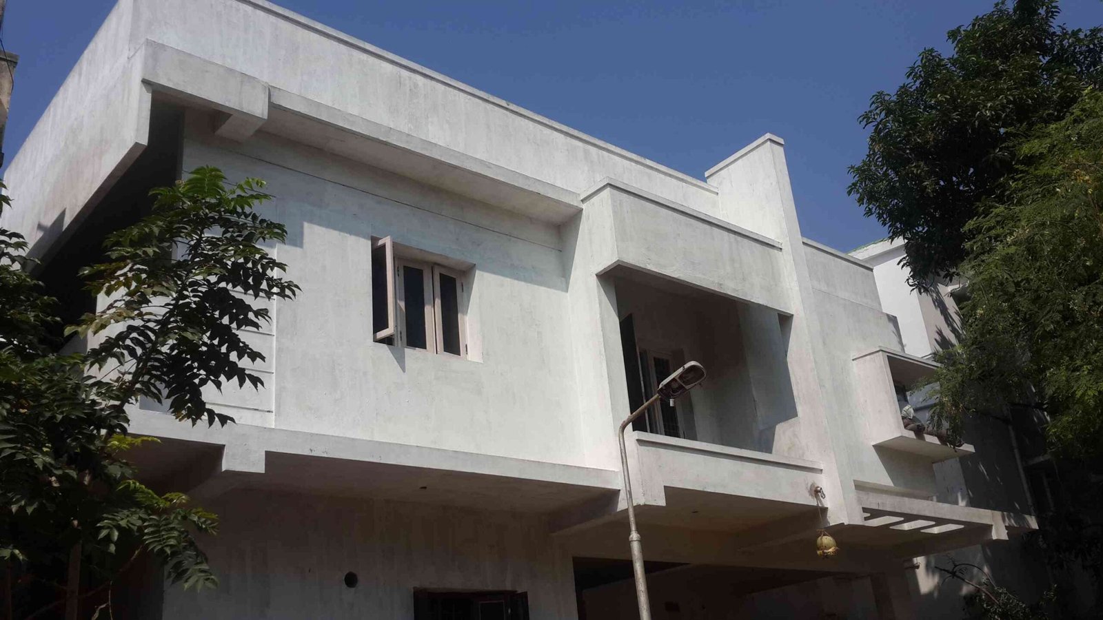 This Residence at Velachery was built in 2016 for Mr.Sairam. It was designed in a minimalistic approach having four bedrooms and a large living/Dining room with open kitchen Concept and an exterior showcasing bold balconies in the front and with careful consideration of light and play using the pergolas and other shading elements. Vastu was a key important factor of this Residence. This has got separate 1BHK in the second floor for renting it out. The materials used in this residence had a choice of selection is to minimize project cost while meeting product performance goals.