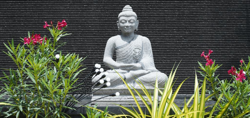The home’s interior is designed for comfort and practicality, with five spacious rooms and a cozy guest room. The terrace garden, featuring a water cascade and Buddha statue, creates a tranquil outdoor retreat surrounded by lush plants. This garden offers a peaceful space for relaxation and reflection.